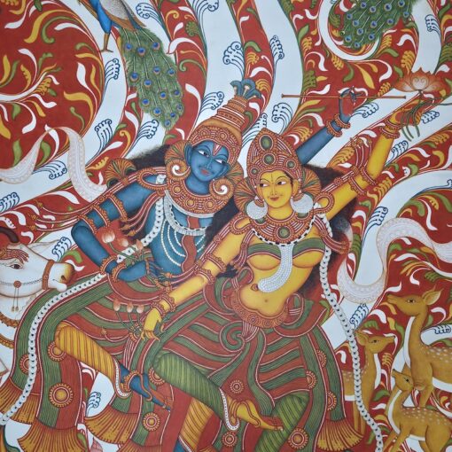 When we decided to buy a new house that had a double height ceiling (~ 20 ft), it did not take us much time to decide that we wanted something that reflected our culture to dominate this space. There is nothing like an exquisitely detailed chumar chitram (kerala temple mural) to set the tone for house that aims to be that home away from home.