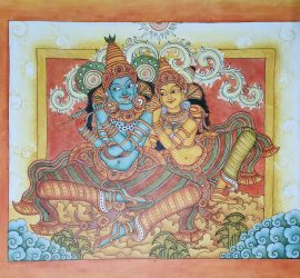 Murals in the Staircase Room The themes are several and various in this room, which measures 18-ft by 17-ft. The paintings include a family portrait of Siva, Vishnu in his Sankarshana form, Ardhanariswara, or Siva as half-female and half-male, the coronation of Rama, Kirata-Siva, Anantasayanam, few themes from the Devi Mahathmyam, paintings of the ten incarnations of Vishnu, and also an unfinished painting of Vishnu. The picture of the deity […]